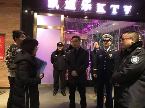 联合检查组先后到凯迪乐KTV、芒果影城、亿万光年网咖详细了解场所经营状况,重点对消防通道是否畅通、消防器材配备是否到位和有效、安全出口标识是否明显、消防制度是否健全等内容进行检查。