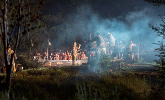 实景剧“舞台”长达4.6公里,位于一条叫作秦溪的河流两岸,游客坐船观看演出。“舞台”在白天就是当地农民真实劳作的田园,此山此水此人,堪称“与地球同年龄的剧场”。