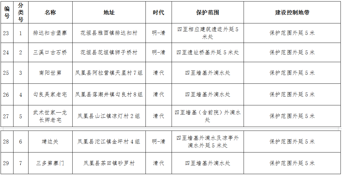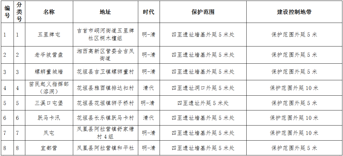 湘西土家族苗族自治州第六批州级文物保护单位名单(共30处)