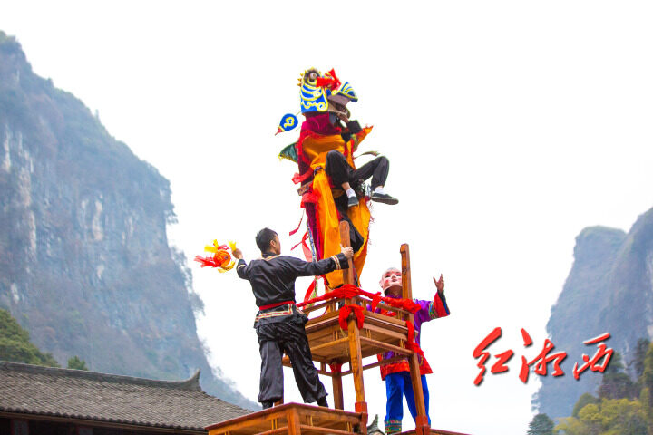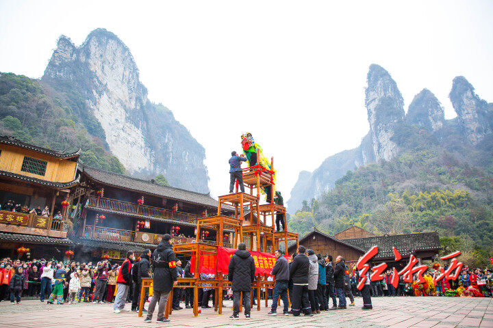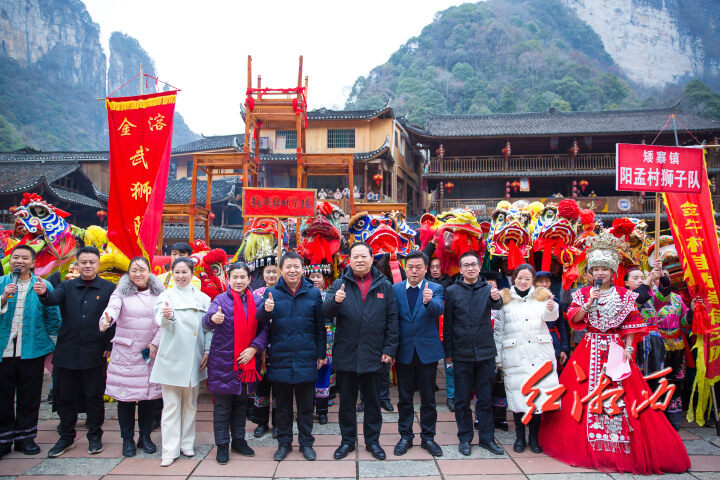 湘西州吉首市矮寨奇观景区:“百狮”闹春庆新年