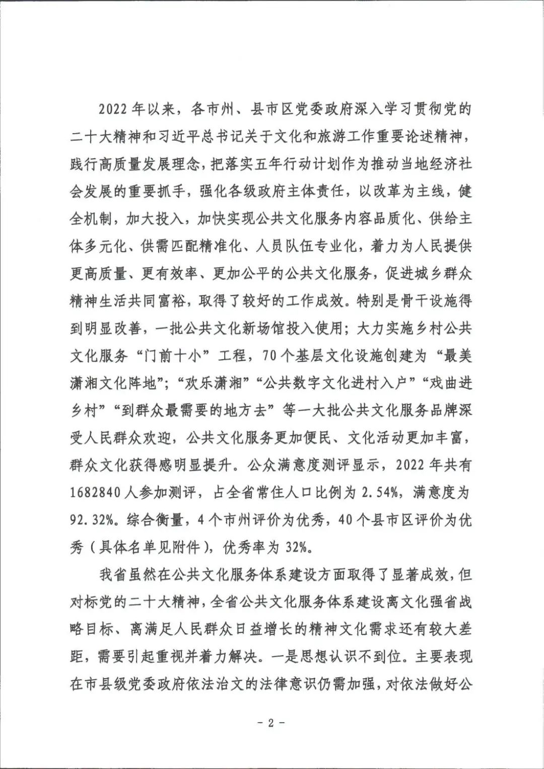 娄底两县市获评湖南省公共文化服务体系高质量发展五年行动计划绩效评价“优秀”县