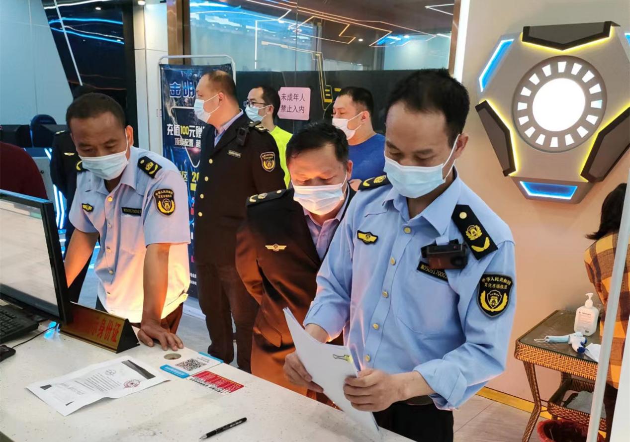 执法队仔细查验了每处娱乐场所的营业执照、“未成年人限入”标识设置情况,核实身份信息、实名登记等方面的情况。还核查了员工花名册以及接待登记台账,检查了各场所的消防设施是否完备,重点查看是否存在雇佣未成年人或违规接待未成年人情况,以及ktv曲库曲目内容等情况。
