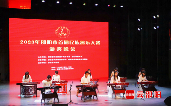 7月15日晚,2023年邵阳市首届民族器乐大赛颁奖晚会在市文化馆百姓剧场举行,对各组别金奖、银奖、铜奖的获奖选手进行了颁奖。晚会上,来自全市的民乐参赛选手纷纷登台献艺,以丰富的形式和精湛的技艺为现场观众带来了一场民族器乐的视听盛宴。