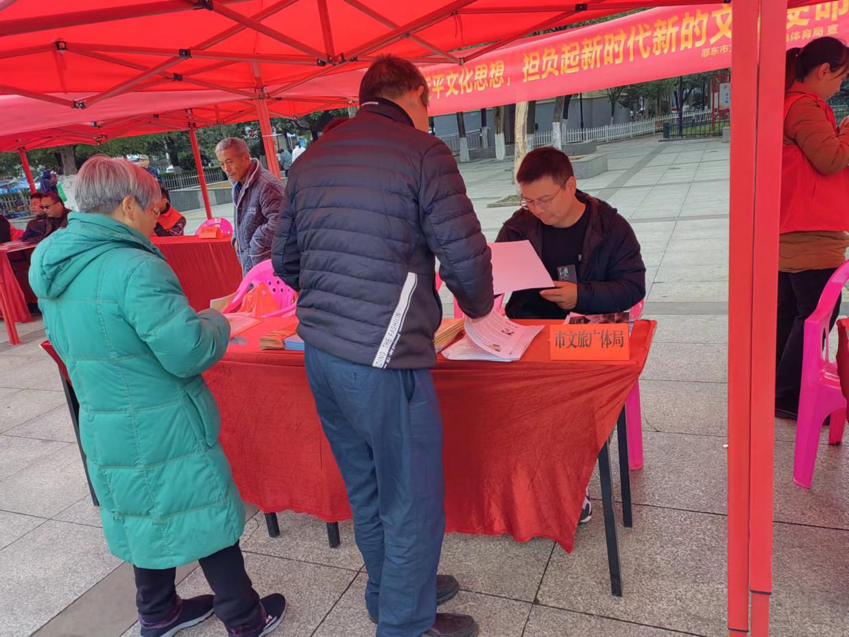 本次活动在邵东市百富广场集中开展,邵东市文化旅游广电体育局立足工作实际,通过悬挂宣传横幅、设立咨询台,摆放宣传展板、发放宣传资料等方式,积极向群众宣传习近平法治思想、宪法及文化旅游广电体育行业相关的法律法规,耐心向群众讲解涉及未成年人保护以及文化旅游市场规范经营等方面的政策法规。咨询台还精心准备了《宪法》《民法典》以及《文物保护法》《非物质文化遗产法》《中华人民共和国旅游法》《未成年人保护法》等文旅行业相关法律法规文本。本次活动共发放宣传1700余册,大力弘扬了宪法精神,精准发扬了行业普法特色。