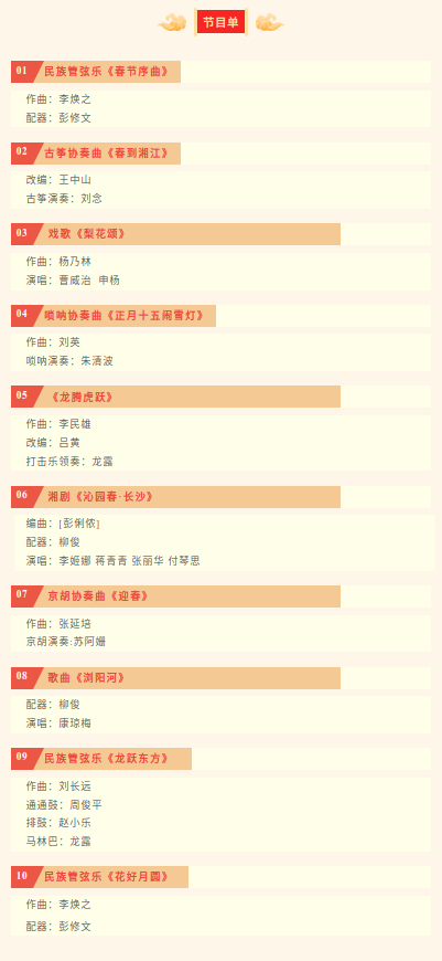 一度元宵,一夜灯火。新的一年,新的期许。为庆祝这个特别的日子,由娄底市文明办、娄底市创管办、娄底市文化旅游广电体育局主办,娄底市文化馆承办,湖南省湘剧院湖湘民族乐团演出的“春到万家”——娄底市2024年元宵经典民乐音乐会,将用一首首美妙的乐曲为娄底市广大群众们送上美好的祝福,在美妙的民乐盛会中相聚。