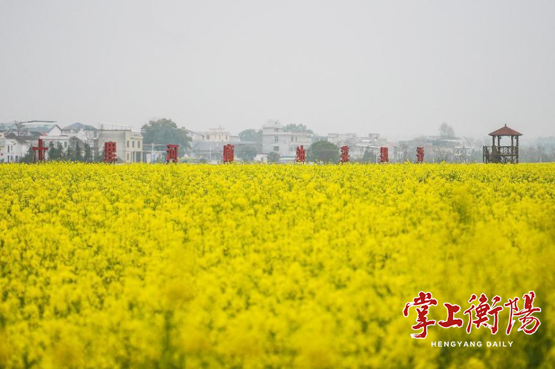 阳春三月,草长莺飞,春风唤醒千亩油菜花海,在新市镇方田驿村十里河廊景区,油菜花田正值花期,微风吹过,金黄色的油菜花朵朵摇曳,把村庄装点得美丽多姿。不仅仅在新市镇,在夏塘镇、永济镇、哲桥镇、马水镇、大和圩乡等耒阳各乡镇,油菜花竞相绽放。前来踏青观景的游客不时驻足,拍照打卡,田园、花海、村落、游人,构成了一幅和谐自然美丽的乡村田园春游图,惹人陶醉。