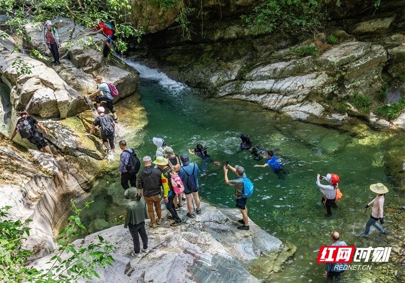 近日,高温持续“炙烤”,新化大熊山国家森林公园成为众多游客避暑的首选。