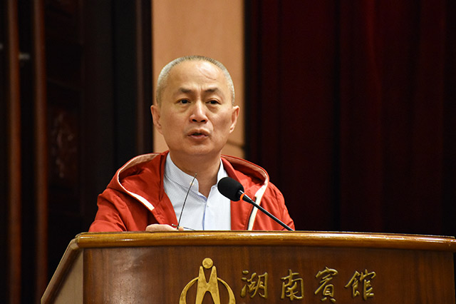 现在是湖南华天控股集团有限公司董事长 陈纪明发言。发言内容《做好“加减乘除” 转型升级发展》