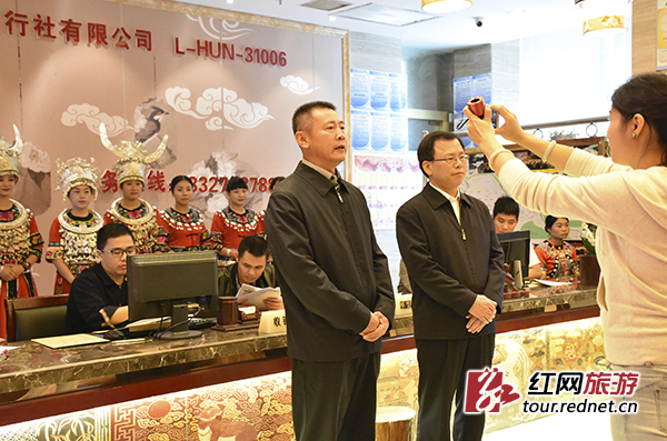 今日,正逢国庆长假首日,由国家旅游局监督管理司司长彭志凯,监督管理司副处长孔磊等组成的督查组来到湖南开展国庆假期旅游市场检查。湖南省旅游局党组书记、局长陈献春,行业管理处处长黄可等陪同检查。国家旅游局局长李金早通过现场连线,对此次检查行动进行了实时了解。