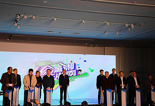 湖南省旅游局党组成员、副局长高扬先与湖南14个市州旅游主管部门代表共同启动装置
