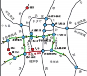 沪昆高速→塔岭枢纽→道林枢纽→赤江枢纽→长沙绕城高速→干杉枢纽→长株高速→龙头铺枢纽→沪昆高速
