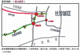 由长韶娄高速往长沙城区绕行:长韶娄高速→道林互通→岳临高速→白箬铺下高速→金州大道→长沙城区