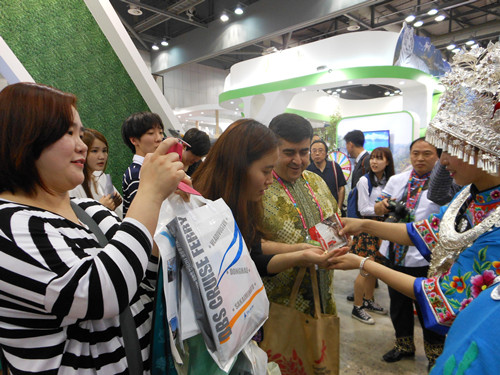 旅博会现场苗族姑娘精彩亮相引起韩国民众浓厚兴趣