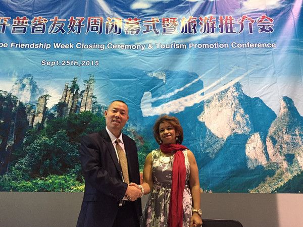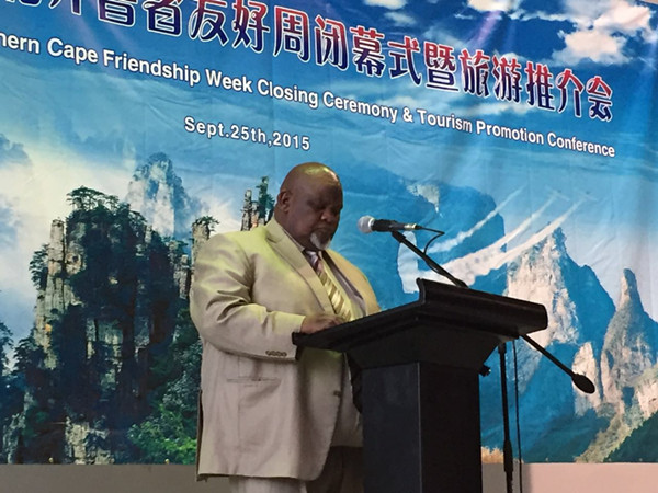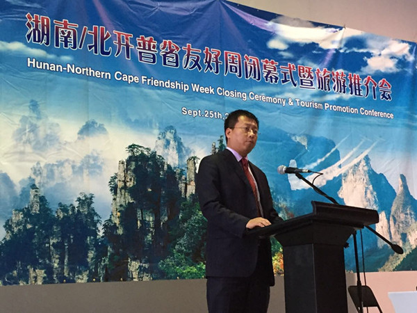 2015年9月25日上午,“中国湖南-南非北开普省友好周”活动的闭幕式暨旅游推介会在南非北开普省金伯利市会展中心隆重举行。湖南省旅游局副局长高扬先代表省人民政府致闭幕词。中国驻开普敦总领事馆张永领事出席闭幕式并讲话。北开普省经济发展和旅游部部长迈克·杰克先生出席闭幕式并在旅游推介会上讲话。闭幕式暨旅游推介会的成功举办给本次中国湖南-南非北开普省友好周活动画上了圆满句号。