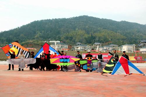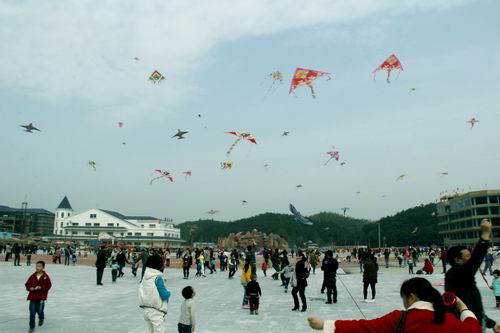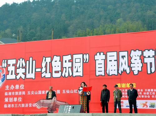 开幕式上,来自风筝之都潍坊及武汉、岳阳等地的风筝制作大师现场表演风筝制作、现场还放飞了各式各样的大型异型风筝,使游客大饱眼福。