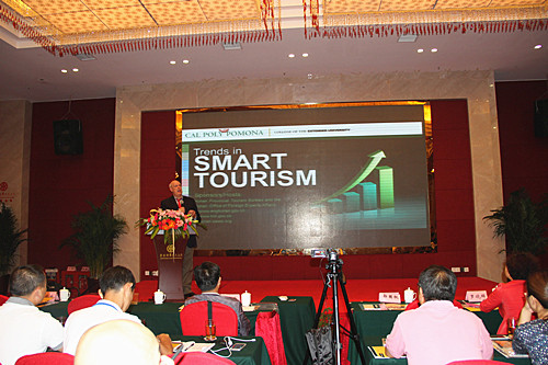 盖瑞•汉密尔顿博士作了题为《智慧旅游、大数据及政府作用》的专题讲座。他通过引证大量数据,向听众介绍了当今世界旅游行业发展现状、特别是中国旅游发展情况;针对当前旅游行业发展“智能化”大趋势,详细讲解“智慧旅游”的技术支撑体系,即:云计算、物联网、终端网络系统,指出商业智能和大数据在旅游行业的广阔前景和运用方法。他指出,旅游管理部门应顺应“智能旅游”趋势,引导行业向智能化方向发展。张简博士作了题为《智能时代的旅游目的地国际营销及品牌战略》的专题讲座。她从世界旅游业发展趋势、中国旅游业发展状况、东西方文化对接、旅游目的地营销、品牌营销、社交网络营销、国际营销渠道、大数据运用、旅游组织架构及政府作用等方面系统阐述了智能时代的旅游目的地国际营销及品牌战略。