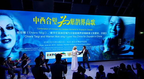 现场还邀请到著名女高音歌唱家姬安娜(Chiara Taigi)和著名男高音歌唱家莫华伦联袂压轴为中国紫鹊界倾情献唱“我爱你,中国”等著名曲目。联袂为紫鹊界高歌。
