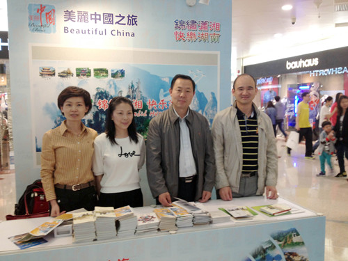 为进一步加强港澳同胞入境旅游市场开发和宣传推广工作,吸引更多港澳游客赴湖南旅游,4月9日至14日,高扬先副局长带领由局市场处相关人员、湖南亲和力旅行社、湖南华天国旅的有关负责人组成的湖南促销团,赴港澳参加了国家旅游局组织举办的2014美丽中国之旅港澳地区主题宣传推广系列活动,并重点推介我省旅游。