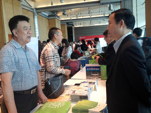 高扬先副局长在产品洽谈会场与旅游企业共同探讨新线路的推广