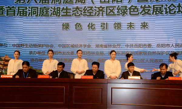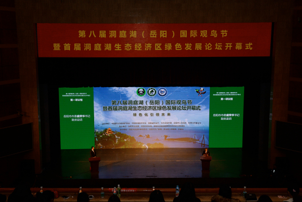 12月11日上午,第八届洞庭湖(岳阳)国际观鸟节暨首届洞庭湖生态经济区绿色发展论坛在岳阳市会展中心拉开序幕。