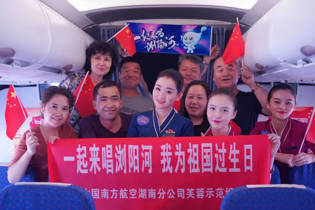 “一起来唱浏阳河”全球传唱席卷各地。图为南方航空湖南分公司在长沙对口支援的吐鲁番航班上一起来唱浏阳河