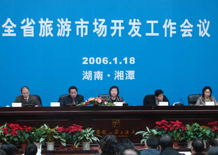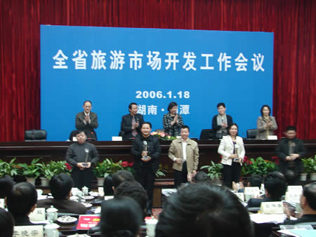 在讲话中,袁局长简要回顾了2005年全省旅游市场开发工作,对在全面恢复入境旅游市场、继续保持国内旅游市场的良好增长势头、策划包装和推介我省旅游目的地形象、加强区域旅游合作与交流、中国湖南旅游节和旅游舆论宣传等方面取得的成绩充分肯定。