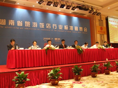 2006年7月22日,全省《星级饭店访查规范》和《绿色旅游饭店》行业标准宣贯会议在郴州华天大酒店召开,全省14个地州市旅游局分管行业的副局长及科长(即省级星评员)及全省四、五星级饭店总经理(省星级星评员)和人事培训部经理(省级内检员)参加了会议。