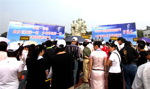 在中国大陆新农村建设大潮中,益阳掌舵者们希望把此地打造中国的新农村示范点——“中国山乡巨变第一村”。今天上午,境内外众多媒体和旅行商参观游览了雏形初显的“中国山乡巨变第一村”。