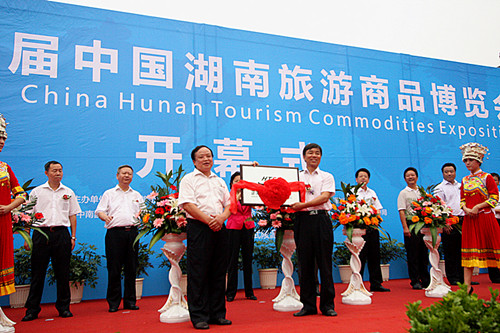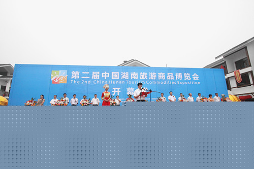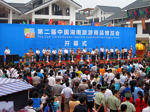 9月17日上午,第二届旅游商品博览会在张家界市溪布商业街盛大开幕。作为2011中国湖南国际旅游节的重要活动,也是中部规模最大的旅游商品盛会,吸引来自四面八方大量游客。本次旅博会由湖南省旅游局和张家界市人民政府主办,武陵源区人民政府和潇湘晨报社共同承办,中南国际会展有限公司、武陵源区旅游局、张家界金瑞旅游发展有限公司具体运营,湖南各市州旅游局协办。湖南省人大常委会副主任刘莲玉宣布旅游商品博览会开幕,国家旅游局党组成员、规划财务司司长吴文学、湖南省旅游局党组书记、局长杨光荣出席开幕式并致辞,湖南省张家界市委书记胡伯俊致欢迎辞,湖南省人民政府副秘书长王光明为于昨日成立的湖南省旅游商品协会授牌,开幕式湖南省旅游局党组成员、副局长熊健主持,中南传媒集团副总经理、潇湘晨报集团董事长刘剑致辞。开幕式现场有来自全省各地市州旅游局相关负责人和境内外媒体共300人应邀参加本届旅博会。
