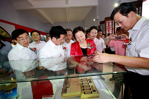 省旅游局杨局长陪同省人大常委会副主任刘莲玉、国家旅游局规划财务司司长吴文学等领导视察旅博会商品