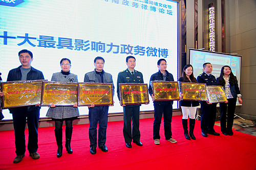 湖南省旅游局官方微博荣获“2013年度十大最具影响力的政务微博”称号