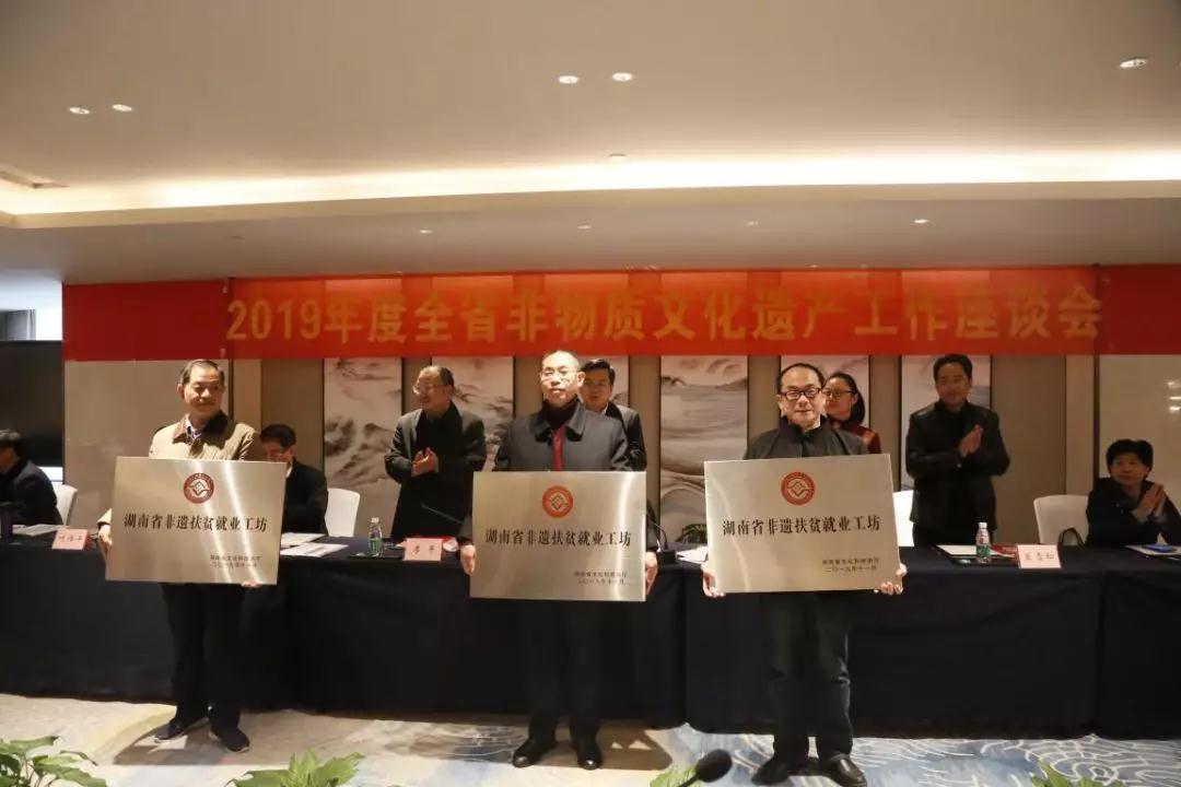 会上,举行了第一批非遗扶贫就业工坊授牌仪式,并学习贯彻了文化和旅游部3号令《国家级非物质文化遗产代表性传承人认定与管理办法》。该《办法》鼓励、支持国家级非物质文化遗产代表性传承人更好地开展传承活动,并完善了国家级非物质文化遗产代表性传承人退出机制,将于2020年3月1日起施行。省非物质文化遗产保护中心、各市州文化旅游广电(体育)局相关负责人就各自非遗保护工作经验进行了交流发言。