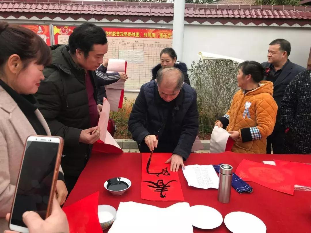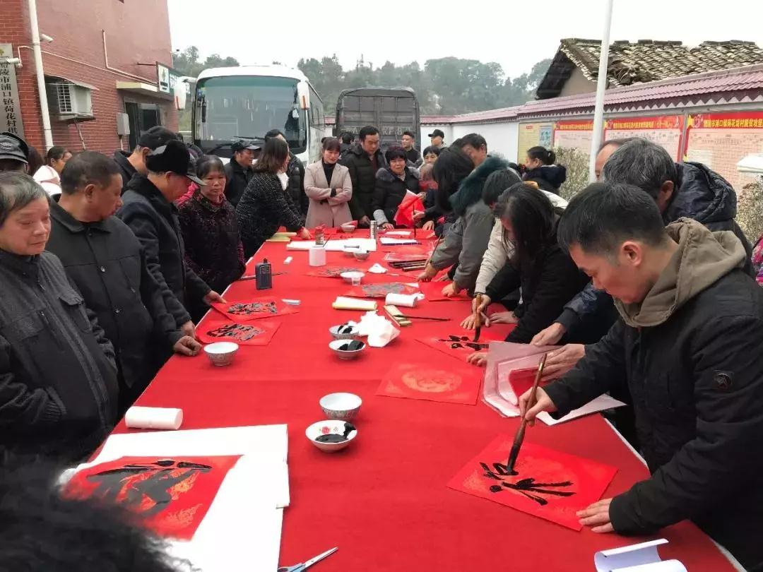 鄢福初和省书法家协会的书法家们为村民送上新年祝福