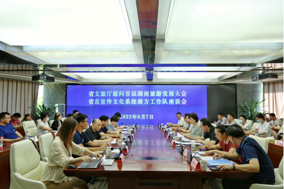 8月7日,李爱武来到张家界市承办首届湖南旅游发展大会作战指挥部,慰问省直宣传文化系统前方工作队并召开座谈会。座谈会上,各媒体代表汇报了旅发大会前期宣传预热情况,李爱武对工作队目前的策划报道给予充分肯定,并对其下一步的工作提出指导和建议。