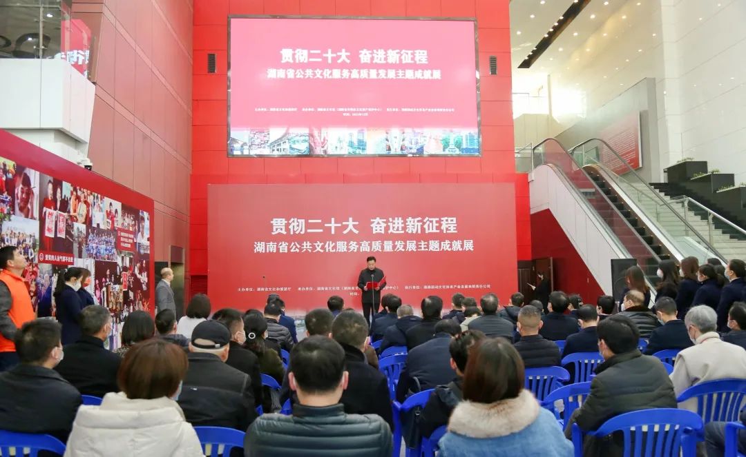 12月12日,“贯彻二十大 奋进新征程”——湖南省公共文化服务高质量发展主题成就展在湖南省文化馆开幕。湖南省委宣传部副部长、省文化和旅游厅党组书记、厅长李爱武宣布开幕。