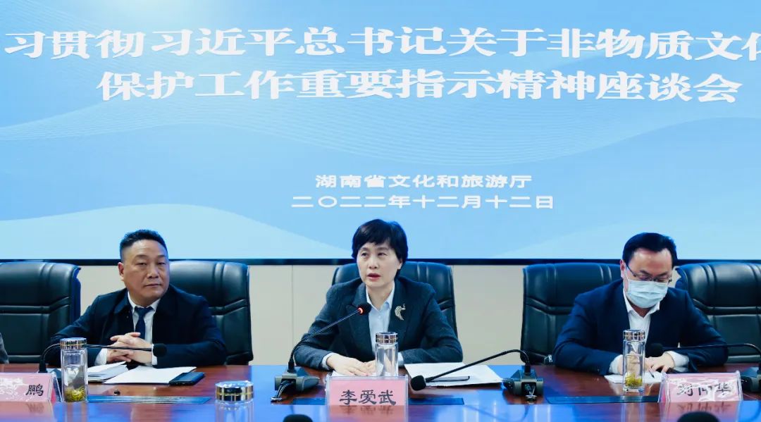 她强调,要全面加强非遗保护,打造更多湖南名牌。当前和今后一个时期,必须坚持以学习贯彻党的二十大精神为主线,加强前瞻性思考、全局性谋划、战略性布局、整体性推进,把来自于人民、传承于人民的非遗保护好、传承好、利用好。要突出保护重点,做好项目储备。扎实推进前期工作,积极申报、靠前储备,重点申报储备一批湘味浓、传承好、影响大且具有重要基础支撑价值的国家级项目,争取早日列入国家级名录;要擦亮湖南特色,做优湘字品牌。要加大对“湘”字品牌的支持力度,用非遗的保护传承发展为品牌赋能,建立完善的品牌培育、发展和保护机制,全面提升湖南文化领域“湘”字品牌的价值和竞争力;要强化系统推进,做强湖南非遗。要强化系统性保护理念,做到“跳出非遗看非遗,于发展全局中看非遗”,不断完善工作制度,强化部门协同配合,提高保护传承能力,加大传播普及力度,加快建设与我省深厚文化底蕴和丰富文化资源相匹配、与社会主义现代化文化强省相承接的高质量非遗保护体系。