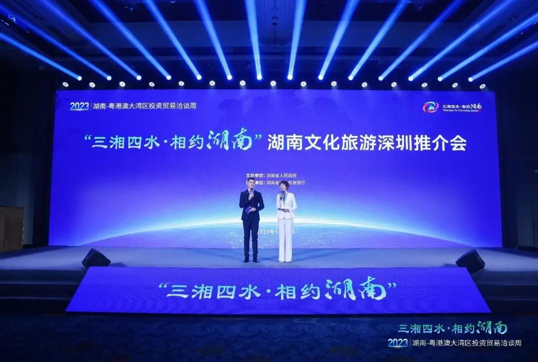 5月31日下午,2023年湖南—粤港澳大湾区投资贸易洽谈周(简称“港洽周”)期间,“三湘四水·相约湖南”湖南文化旅游推介会在深圳举行。省委常委、省委宣传部部长杨浩东出席并致辞。