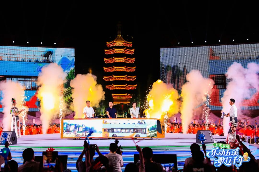 9月17日晚,作为第五届湖南旅游发展大会的重要配套活动,“乐动五溪 歌行千年”村歌联唱活动在怀化市鹤城区鹤鸣洲举办。本次活动由湖南省文化和旅游厅、怀化市人民政府共同主办,怀化市委宣传部、怀化市文旅广体局、湖南省文化馆、鹤城区人民政府联合承办,以村歌为媒,唱响乡村振兴时代新声。