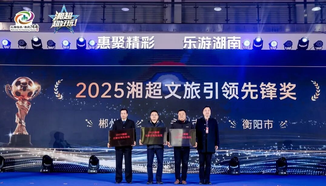 现场颁发了六大荣誉奖项。经过综合评审,一批在资源整合、服务保障、产品创新、宣传推广、消费激活等方面表现亮眼的单位分别荣获2025湘超文旅体商协作聚力奖、球迷服务满意奖、文创产品创新奖、创意宣传推广奖、文旅消费活力奖、文旅引领先锋奖等荣誉。获奖代表作经验分享,展现14市州“一城一品、各具风采”的融合特色。