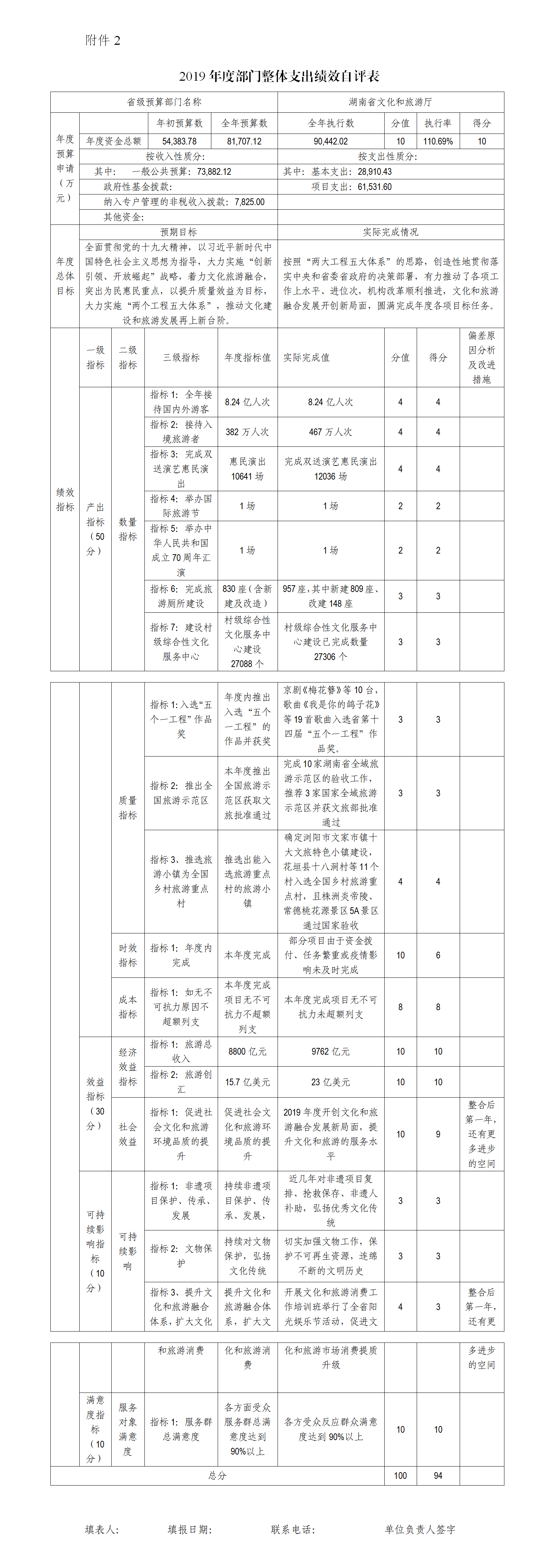 湖南省文化和旅游厅2019年度部门整体支出绩效评价报告