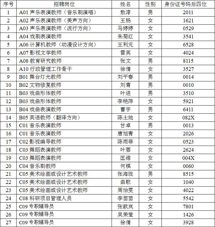 湖南艺术职业学院2020年公开招聘第一批拟聘用人员名单公示