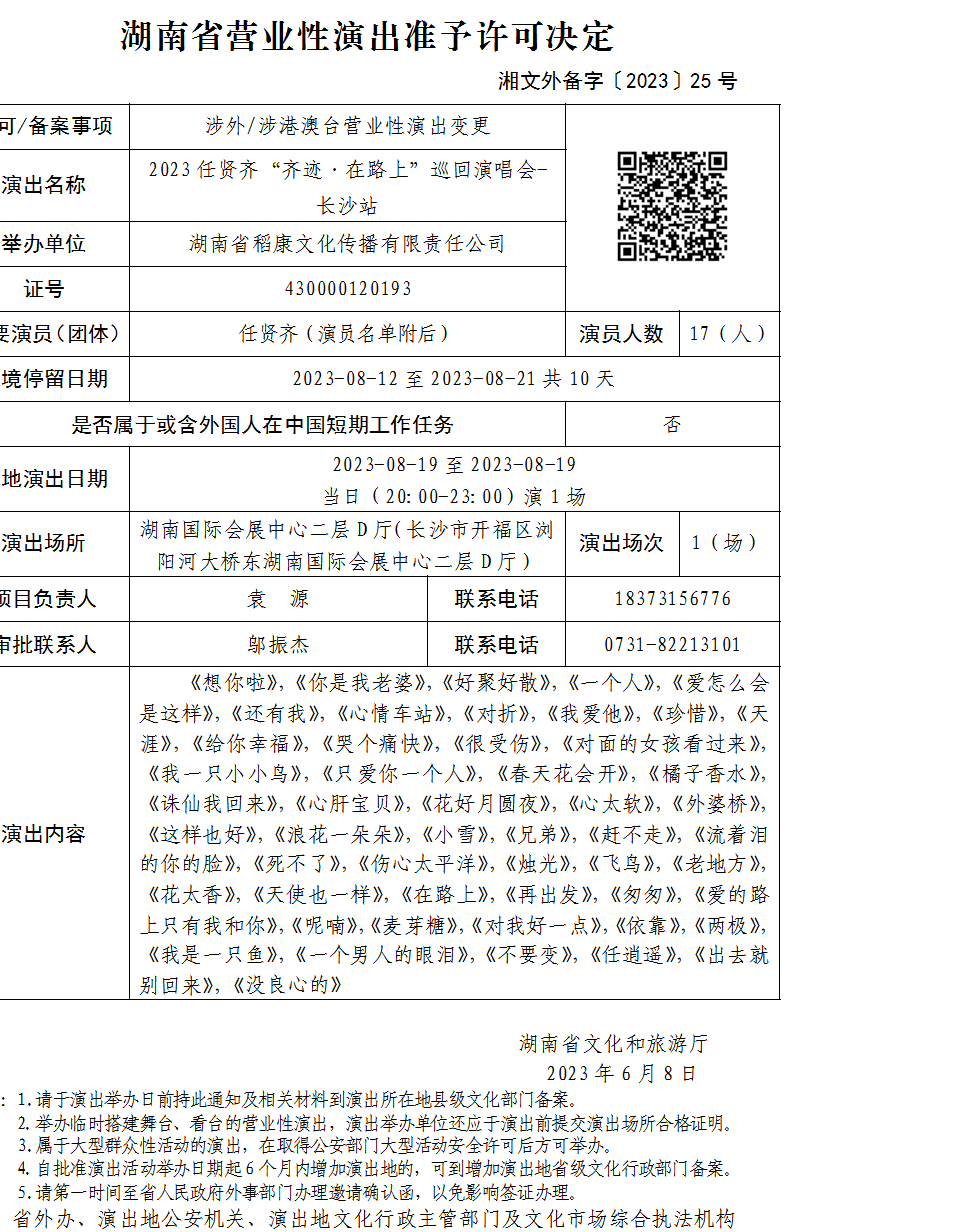 湖南省营业性演出准予许可决定-湘文外备字〔2023〕25号