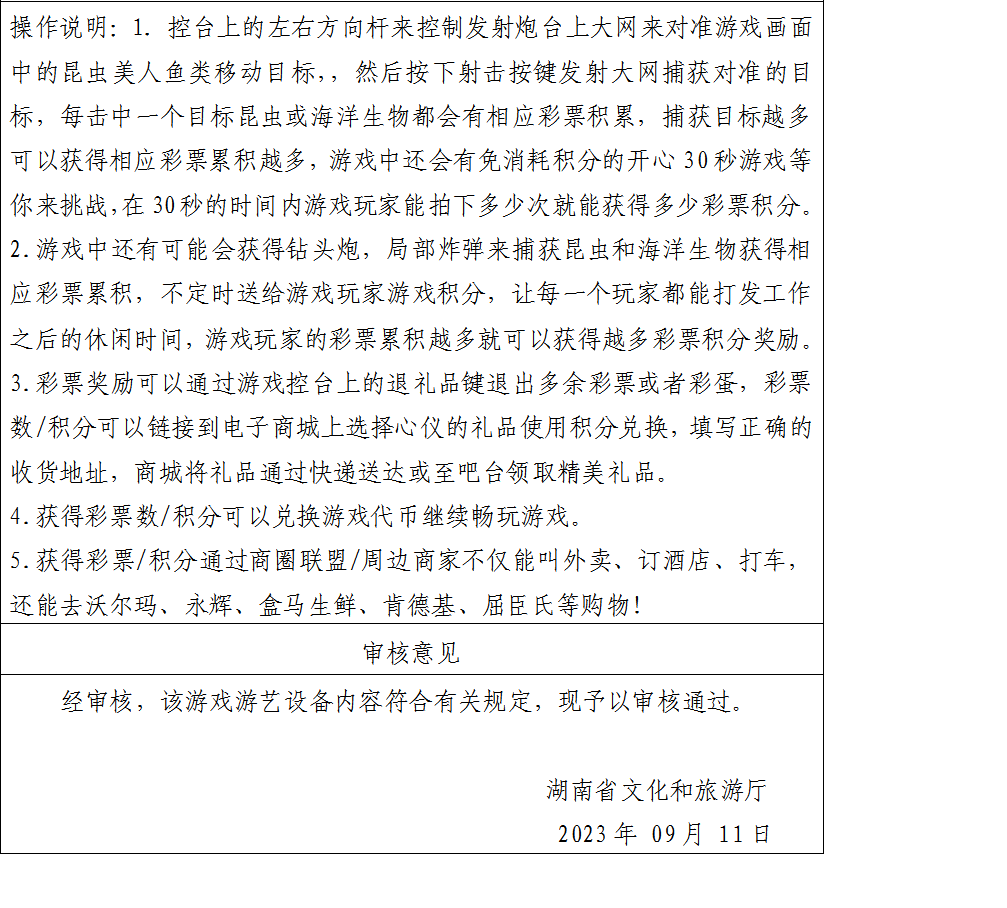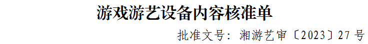 游戏游艺设备内容核准单-批准文号:湘游艺审〔2023〕27号