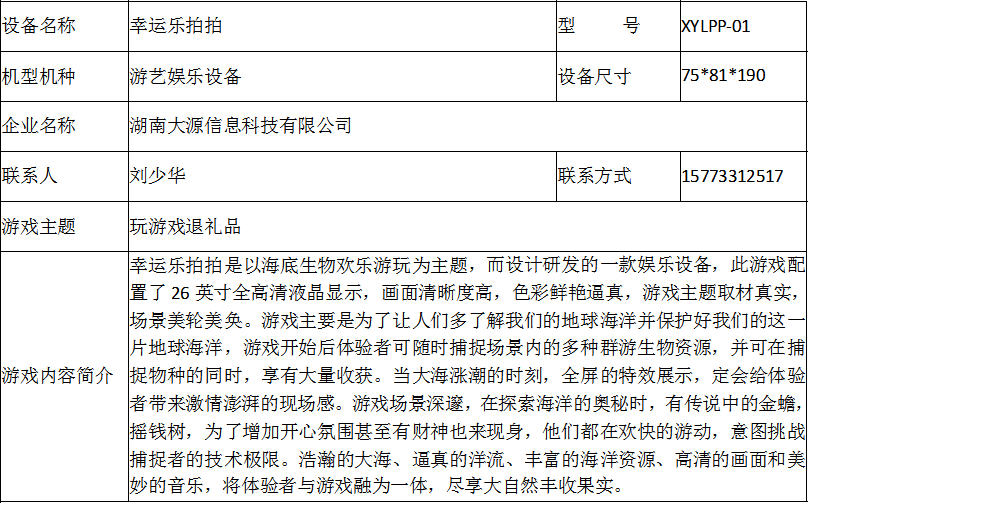 游戏游艺设备内容公示信息