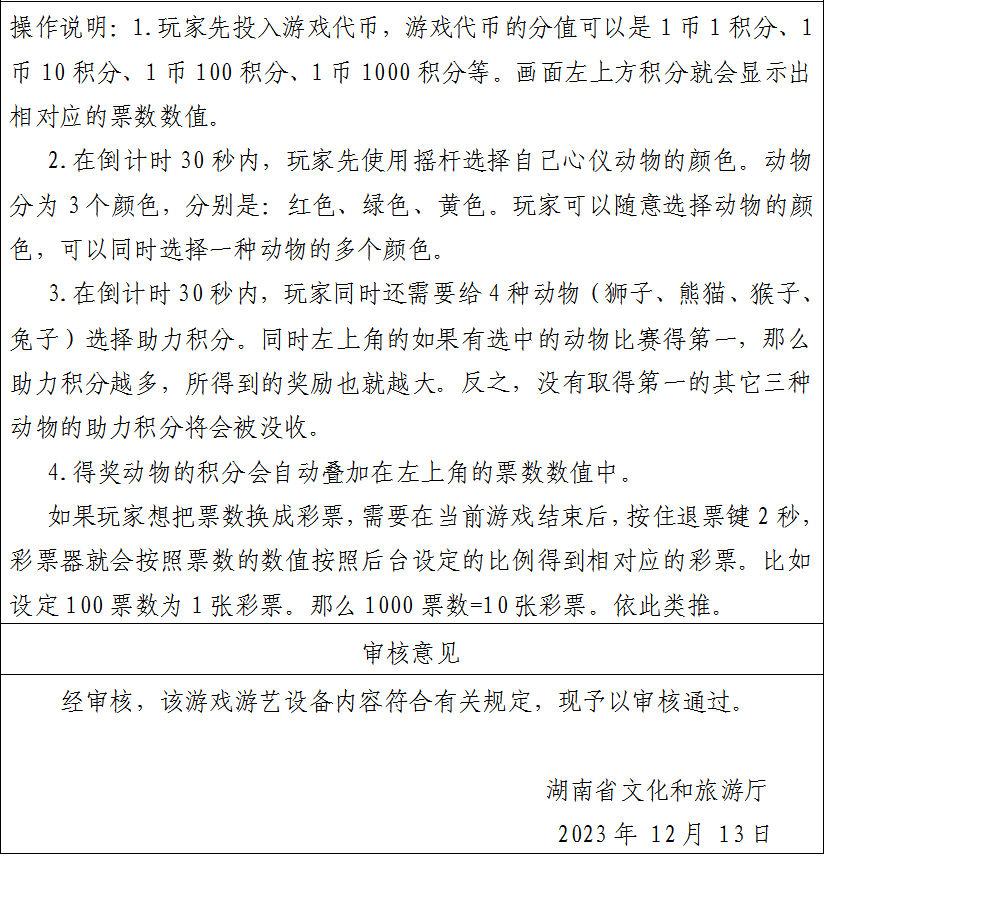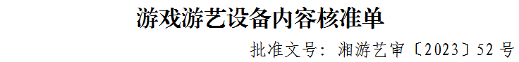 游戏游艺设备内容核准单-批准文号:湘游艺审〔2023〕52号