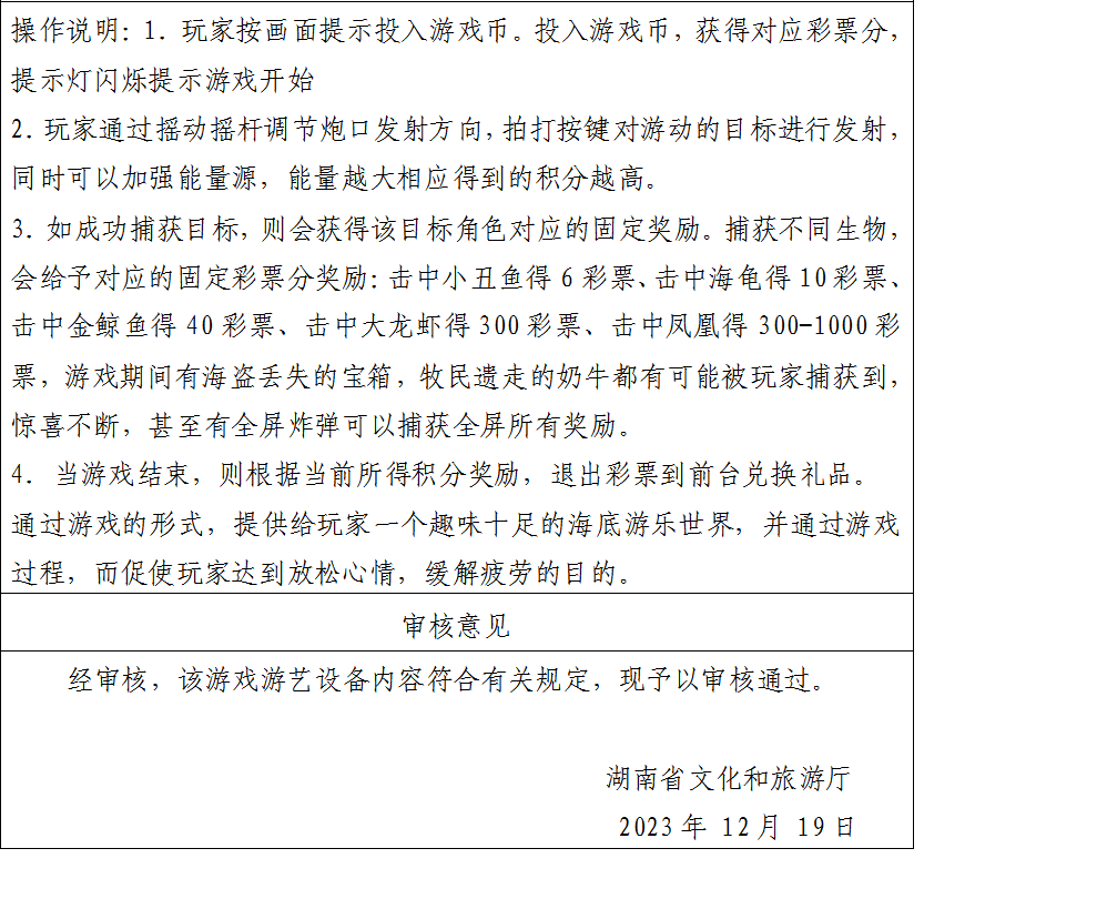 游戏游艺设备内容核准单-批准文号:湘游艺审〔2023〕55号