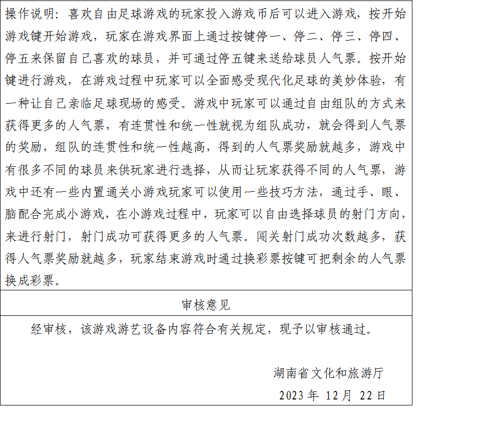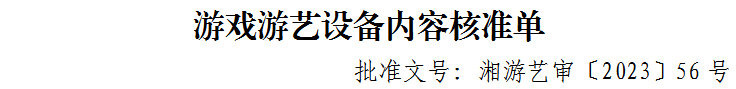 游戏游艺设备内容核准单-批准文号:湘游艺审〔2023〕56号