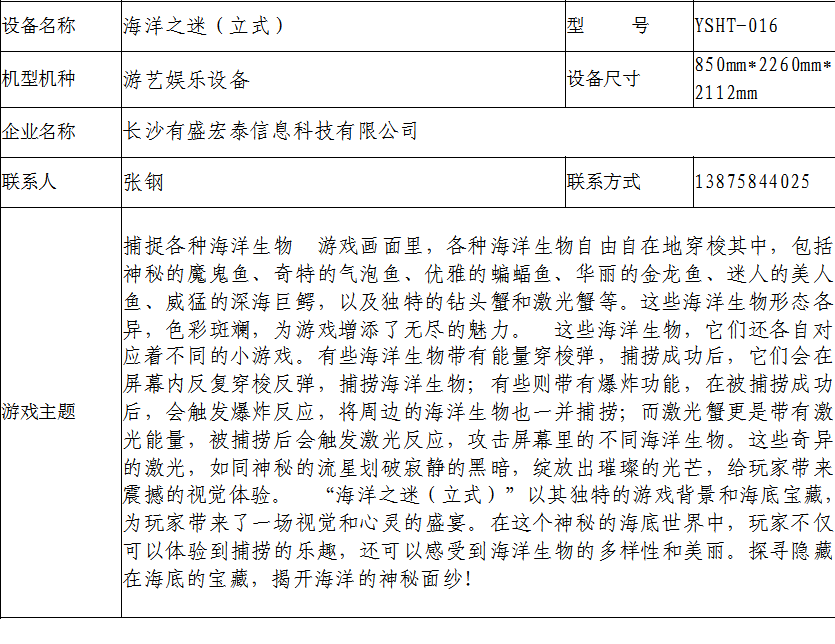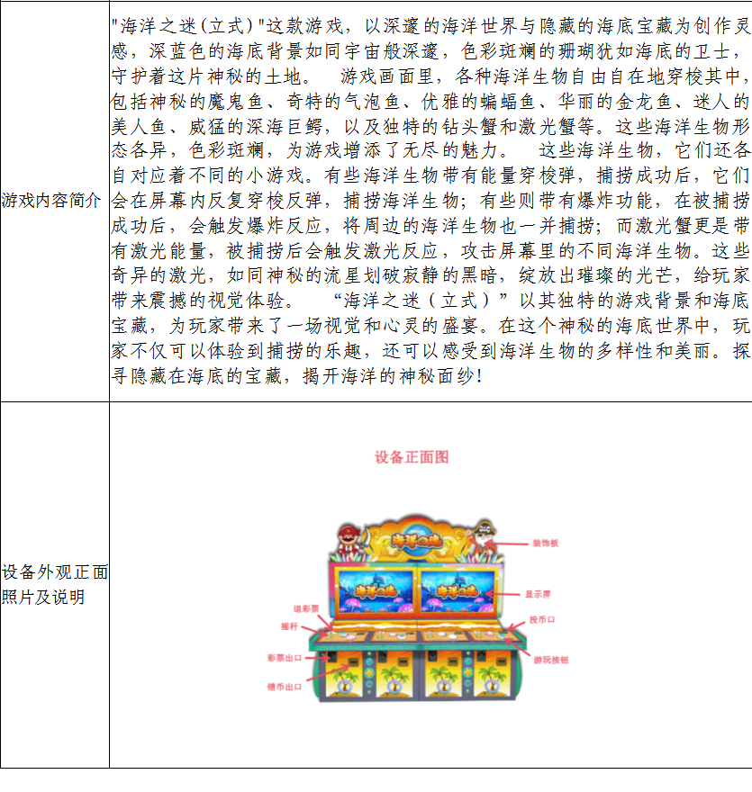 游戏游艺设备内容公示信息
