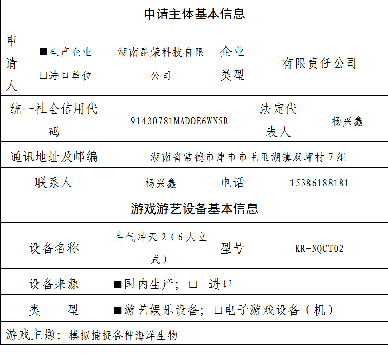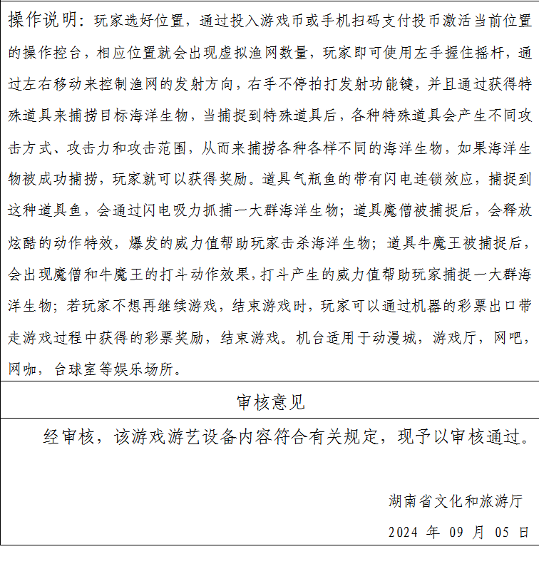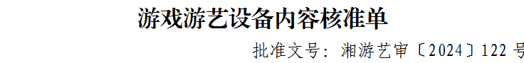 游戏游艺设备内容核准单-批准文号:湘游艺审〔2024〕122号