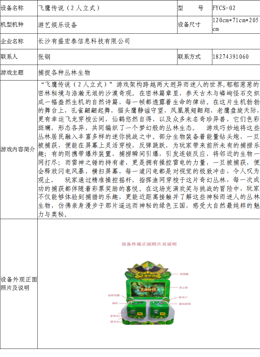 游戏游艺设备内容公示信息